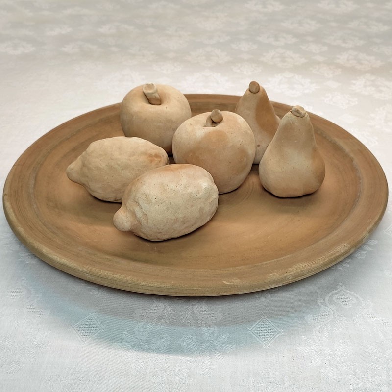 In terracotta, with fruit in relief. Entirely hand painted.