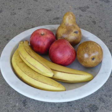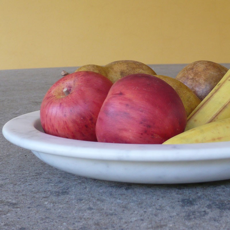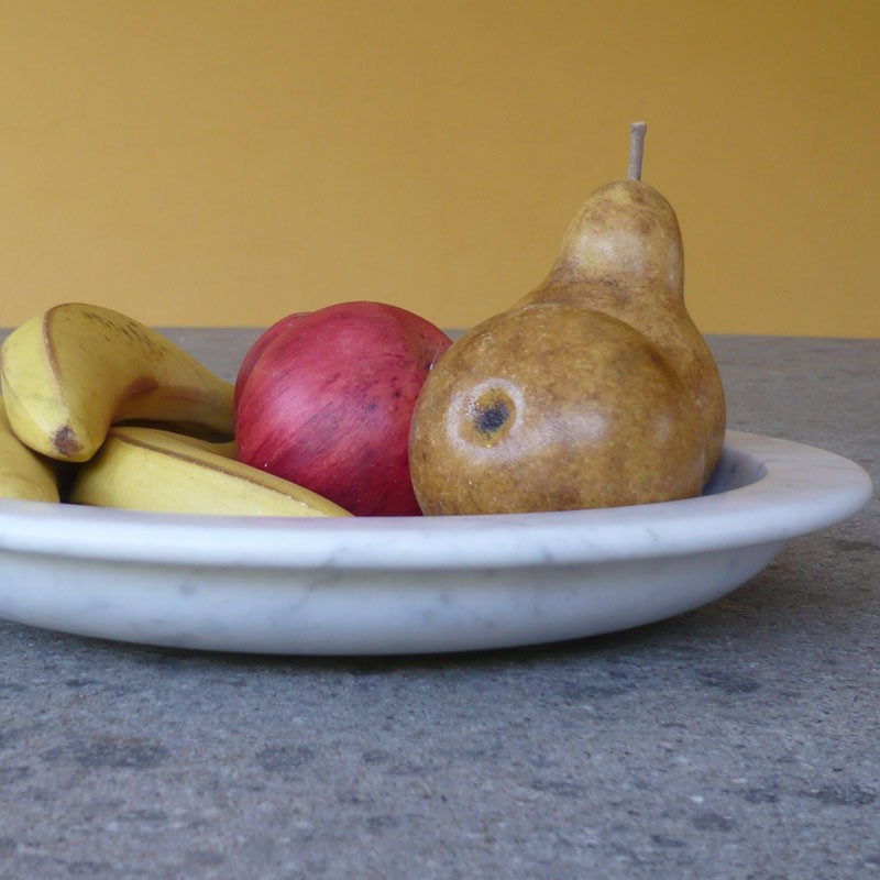 Every fruit is carved from an only piece of White Carrara marble, sculpted and hand painted.