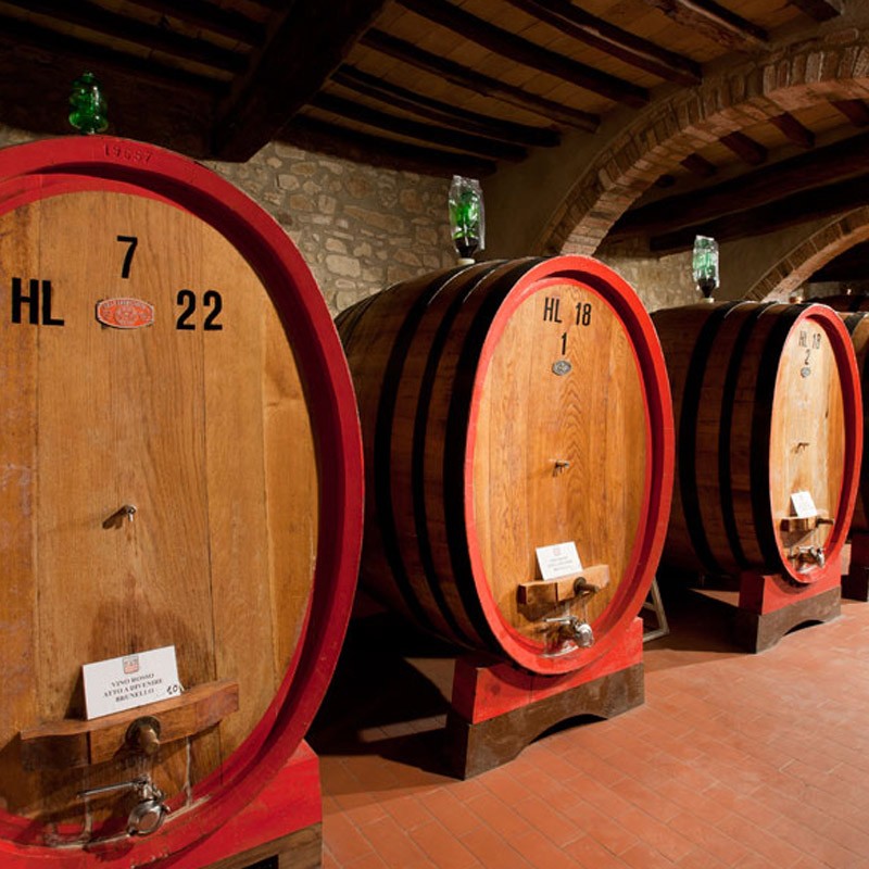 Ageing After racking, the clean wine remains in the stainless steel vats for a few more months during which time the malolactic fermentation occurs very naturally before it is put in barrels. For ageing the wine, the winery has always used big 18-22hl medium toasted Slavonian oak barrels. Even today the barrels are located in two cellars: one on the estate where the oldest barrels are kept while the newer barrels are in the cellar in the historic centre of Montalcino.
