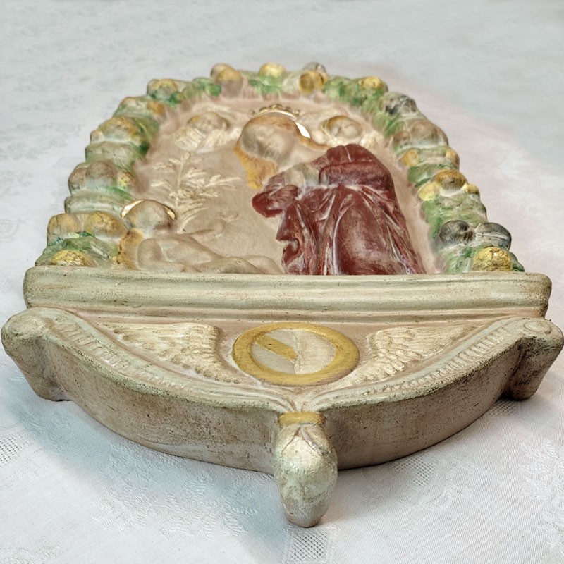 Pannello in terracotta dipinto a mano con rifinitura in foglia d’oro.